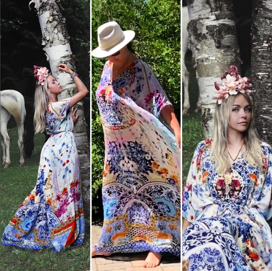 Model is 178 cm / 5'10''. This item is ONE SIZE, 140 cm long. By design Caftan can be used as a dress or bikini cover. Designed for relaxed fit. We recommend buying your usual size, however it will fit from Size Small to XL.